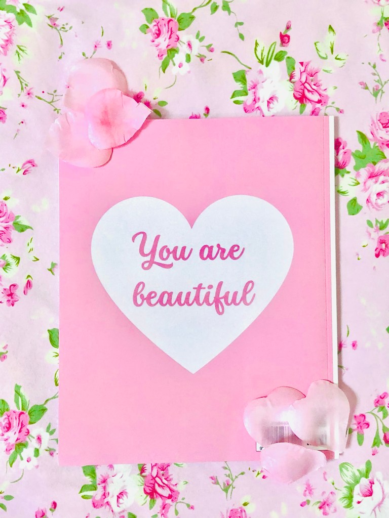 The back cover of the Love Diary is so pretty, I designed it with the shape of a heart representing all the love in the World and adding a feminine quote , reminding how beautiful we all are .π·